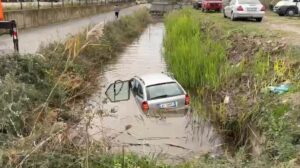 Aksident në Lezhë-Milot, përplasen 2 makina, një prej tyre përfundon në kanal