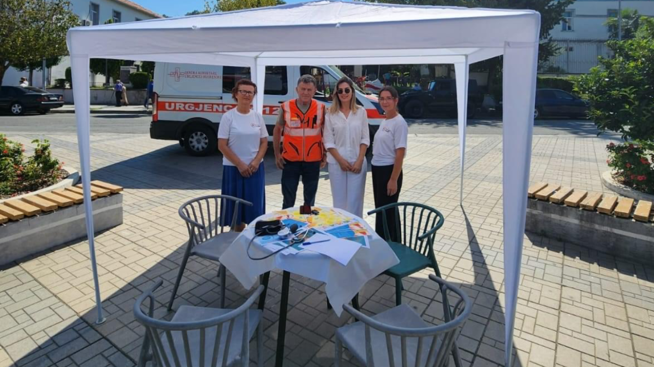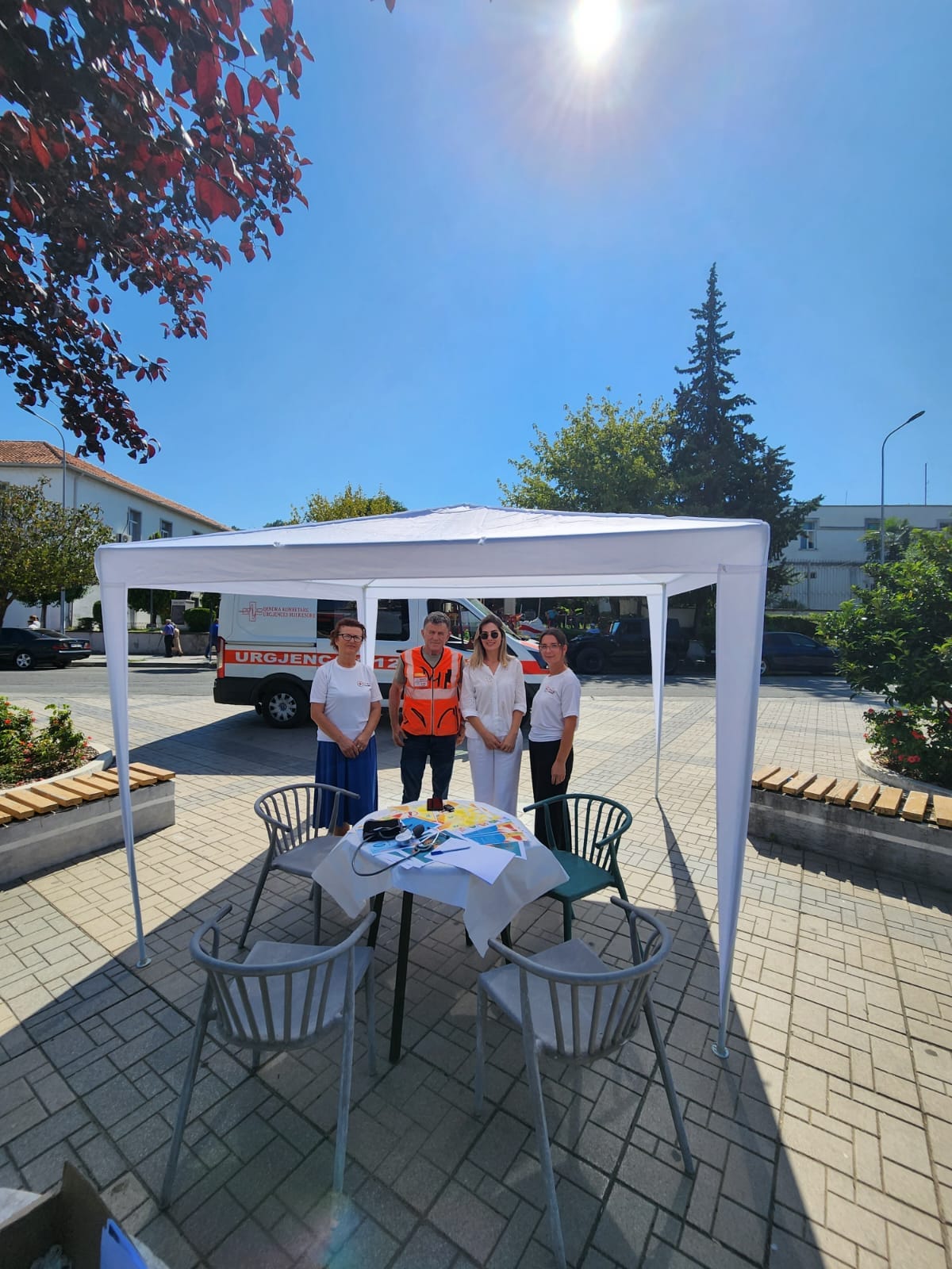 #NJVKSHGramsh është pozicionuar në sheshin qendror të qytetit për një fushat komunikimi dhe informimi të qytetarëve se si mund të shmangin rrisqet që vijnë nga temperaturat e larta si dhe për të dhënë kujdes bazë shëndetësor