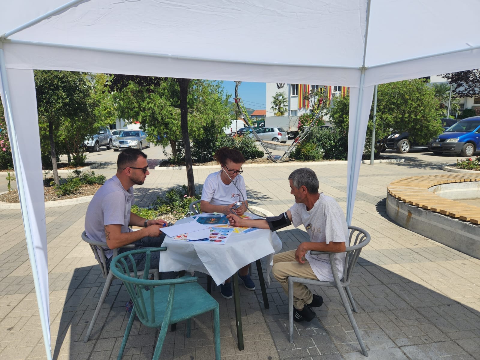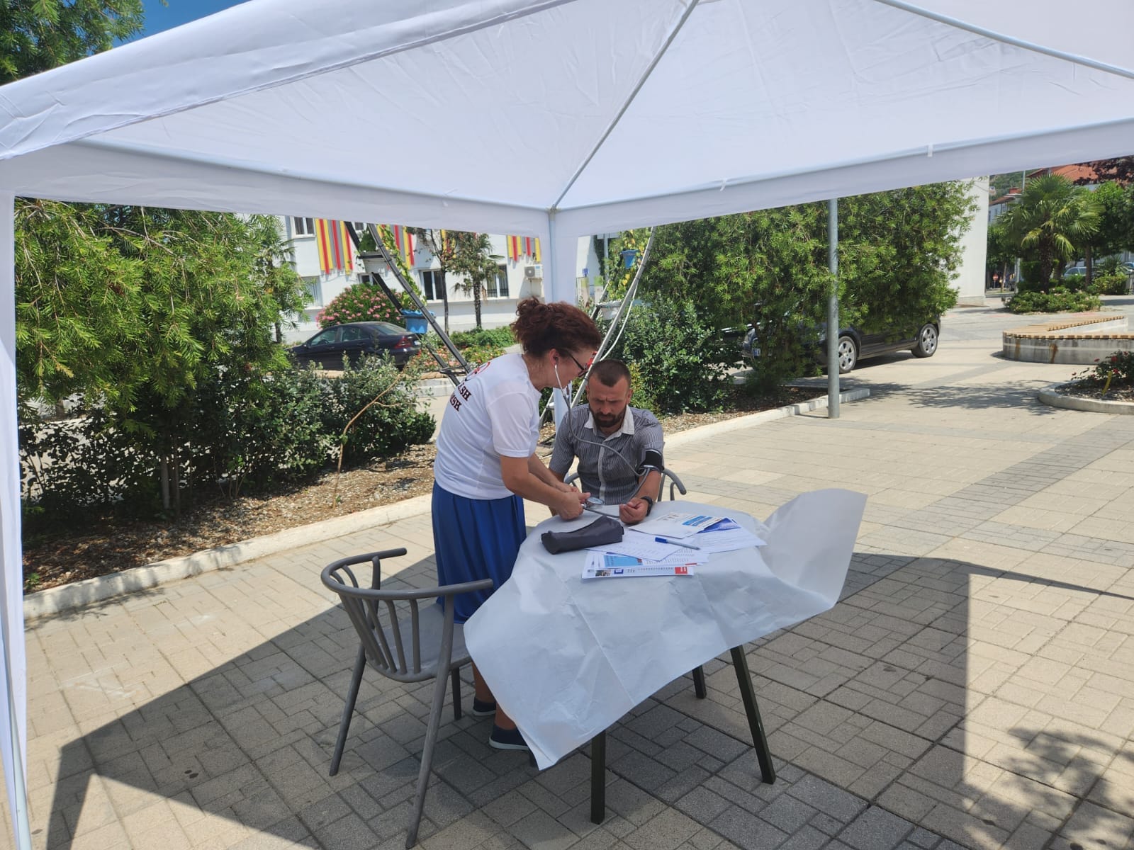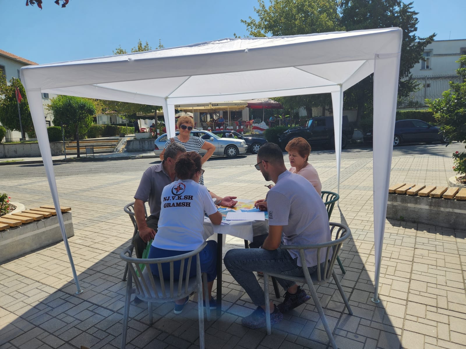 Në këto ditë të valës së të nxehtit,stafi i #NJVKSHGramsh është pozicionuar në sheshin qendror të qytetit për një fushat komunikimi dhe informimi të qytetarëve se si mund të shmangin rrisqet që vijnë nga temperaturat e larta si dhe për të dhënë kujdes bazë shëndetësor