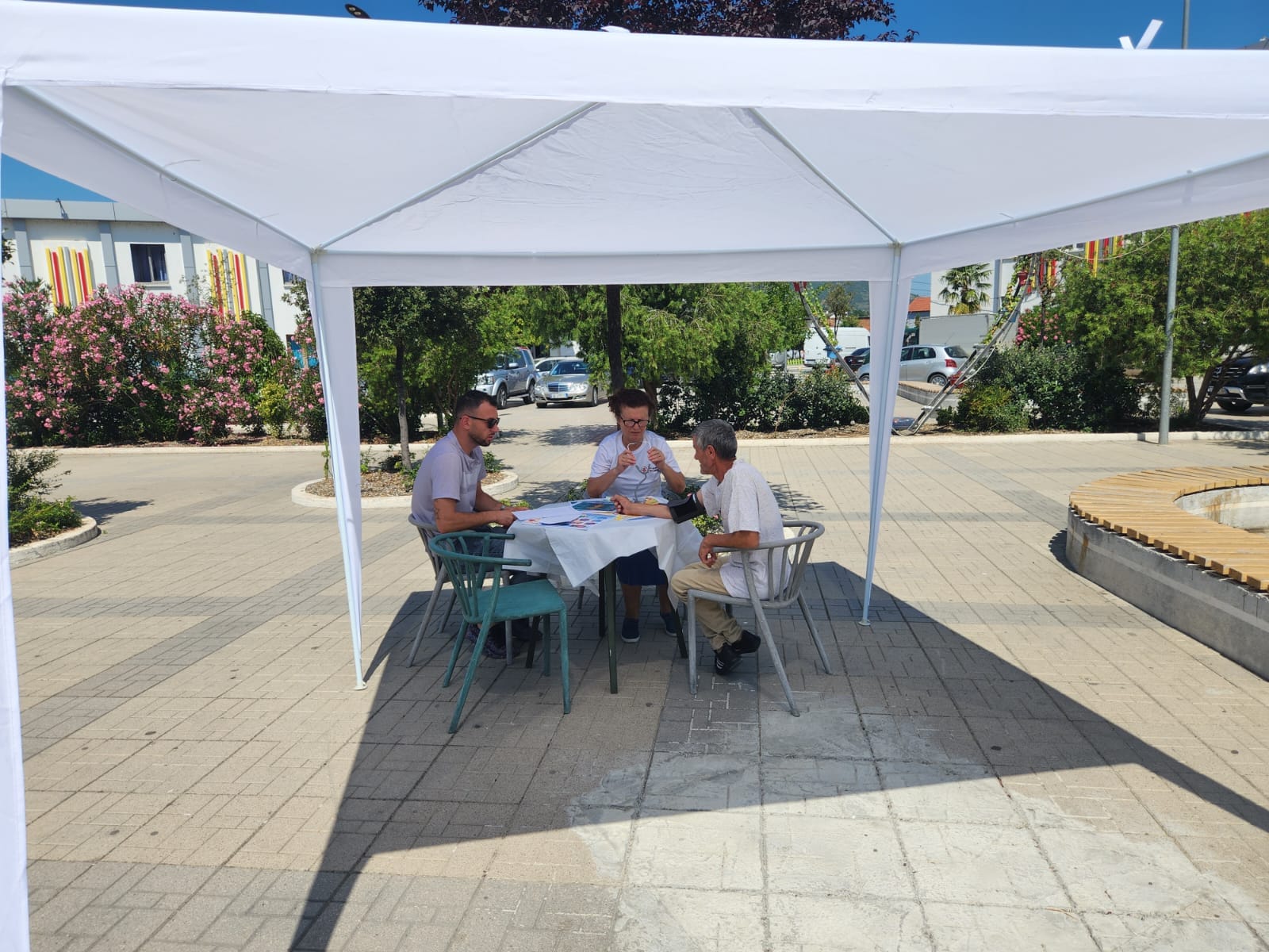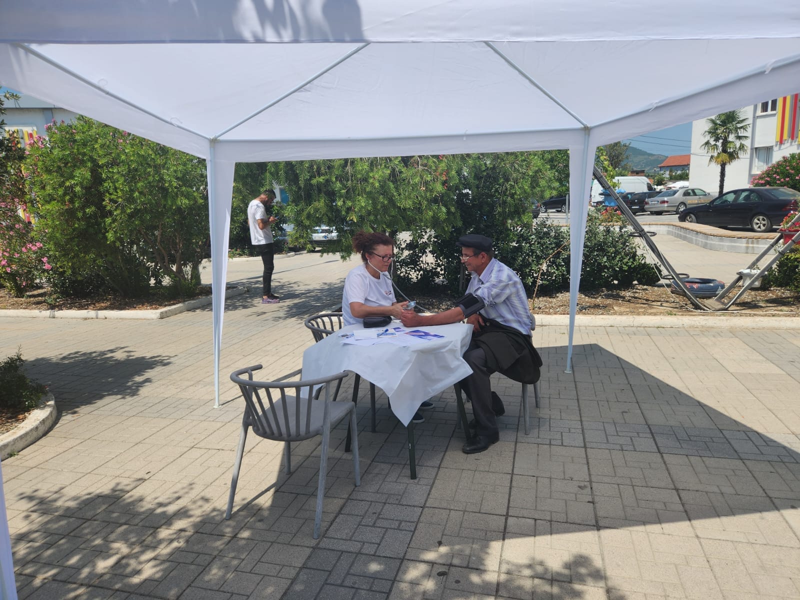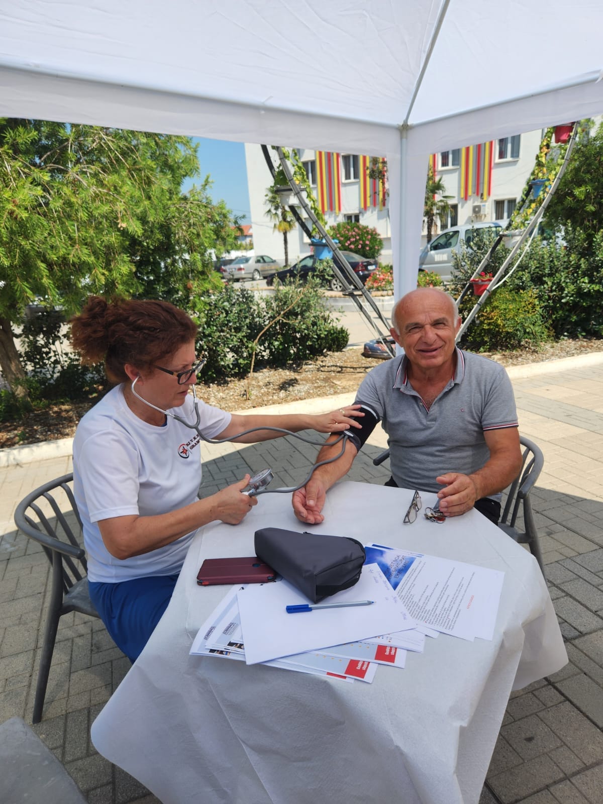 Në këto ditë të valës së të nxehtit,stafi i #NJVKSHGramsh është pozicionuar në sheshin qendror të qytetit për një fushat komunikimi dhe informimi të qytetarëve se si mund të shmangin rrisqet që vijnë nga temperaturat e larta si dhe për të dhënë kujdes bazë shëndetësor