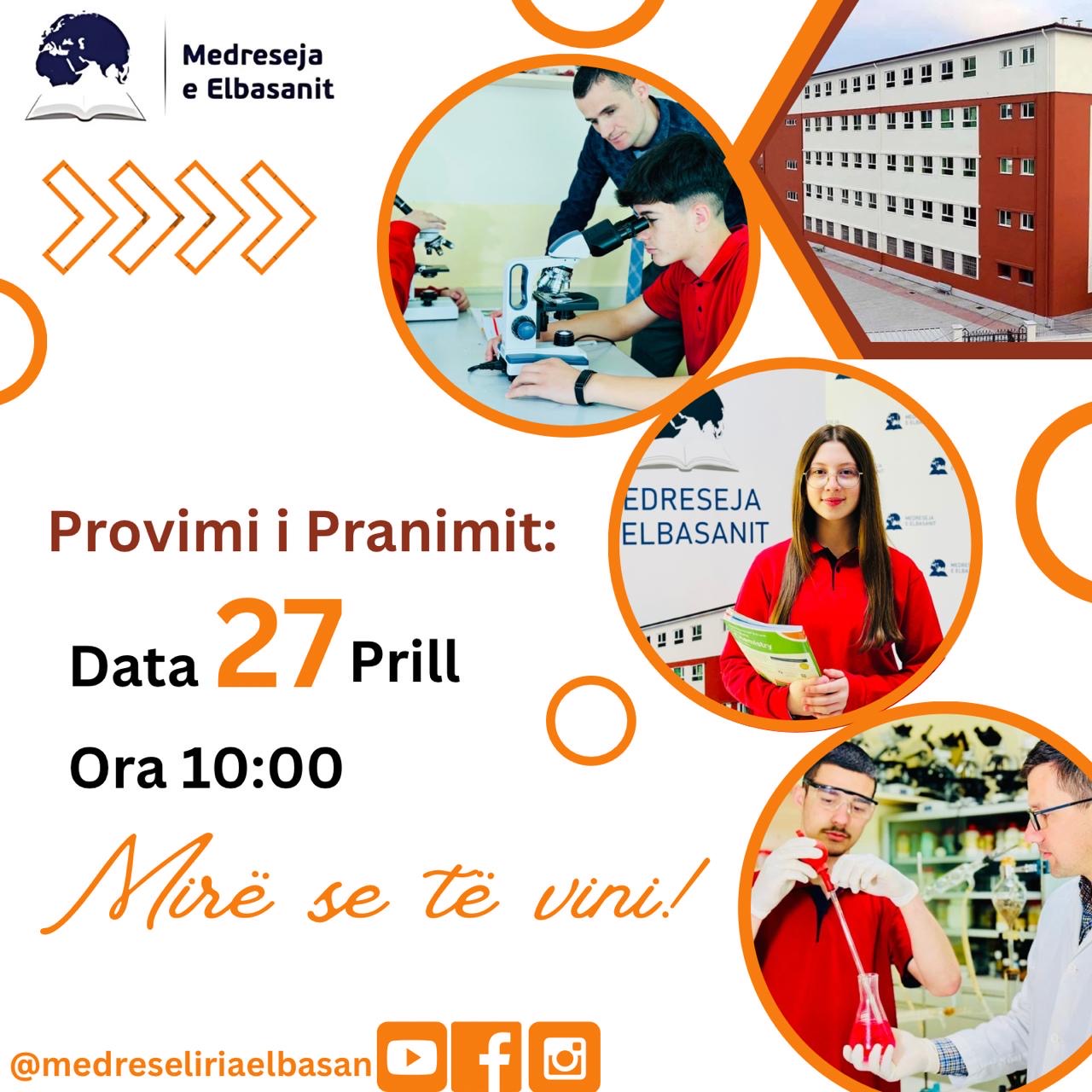 1.Provimi zhvillohet ditën e shtunë, në datën 27 Prill, ora 10:00.