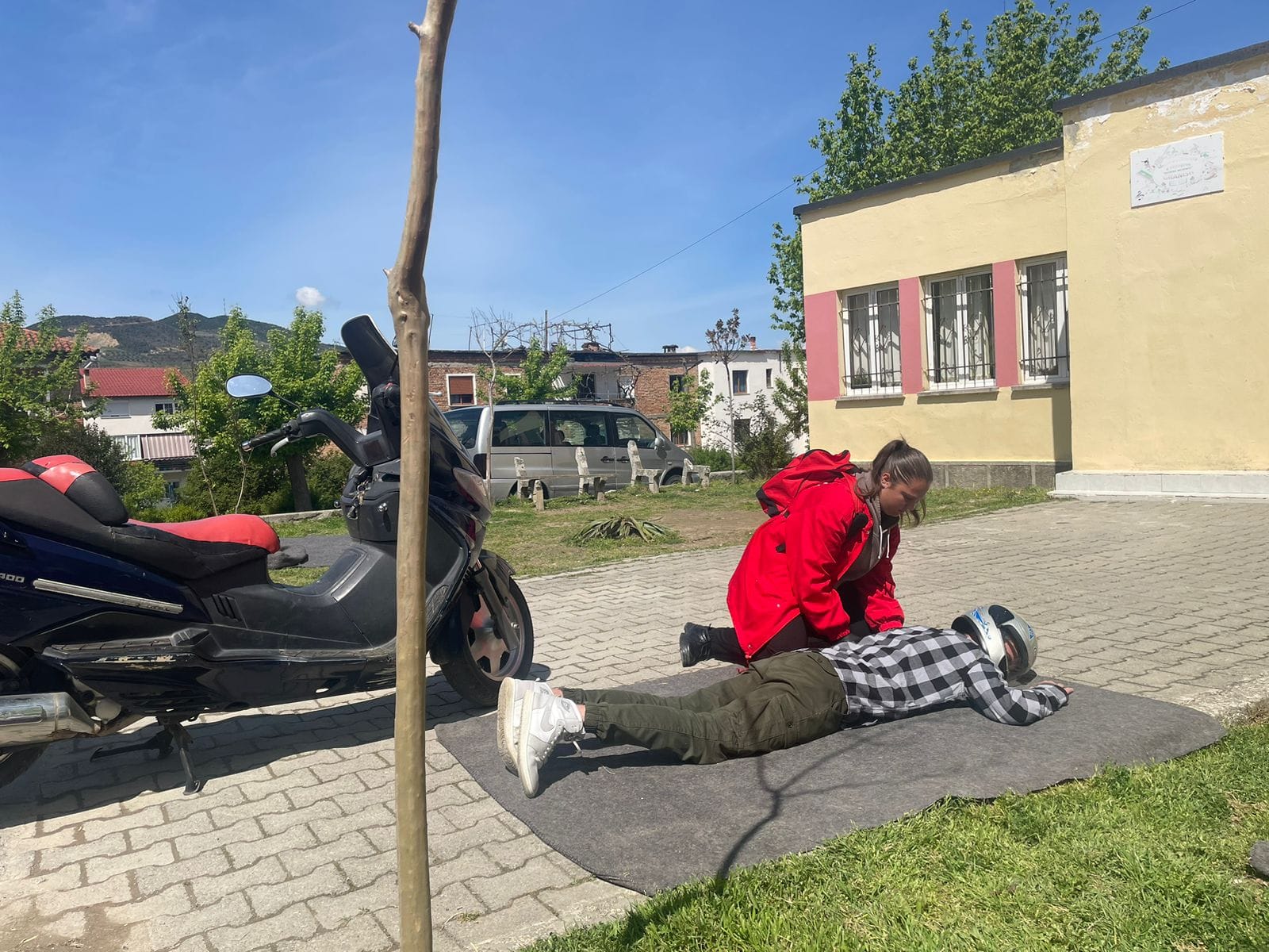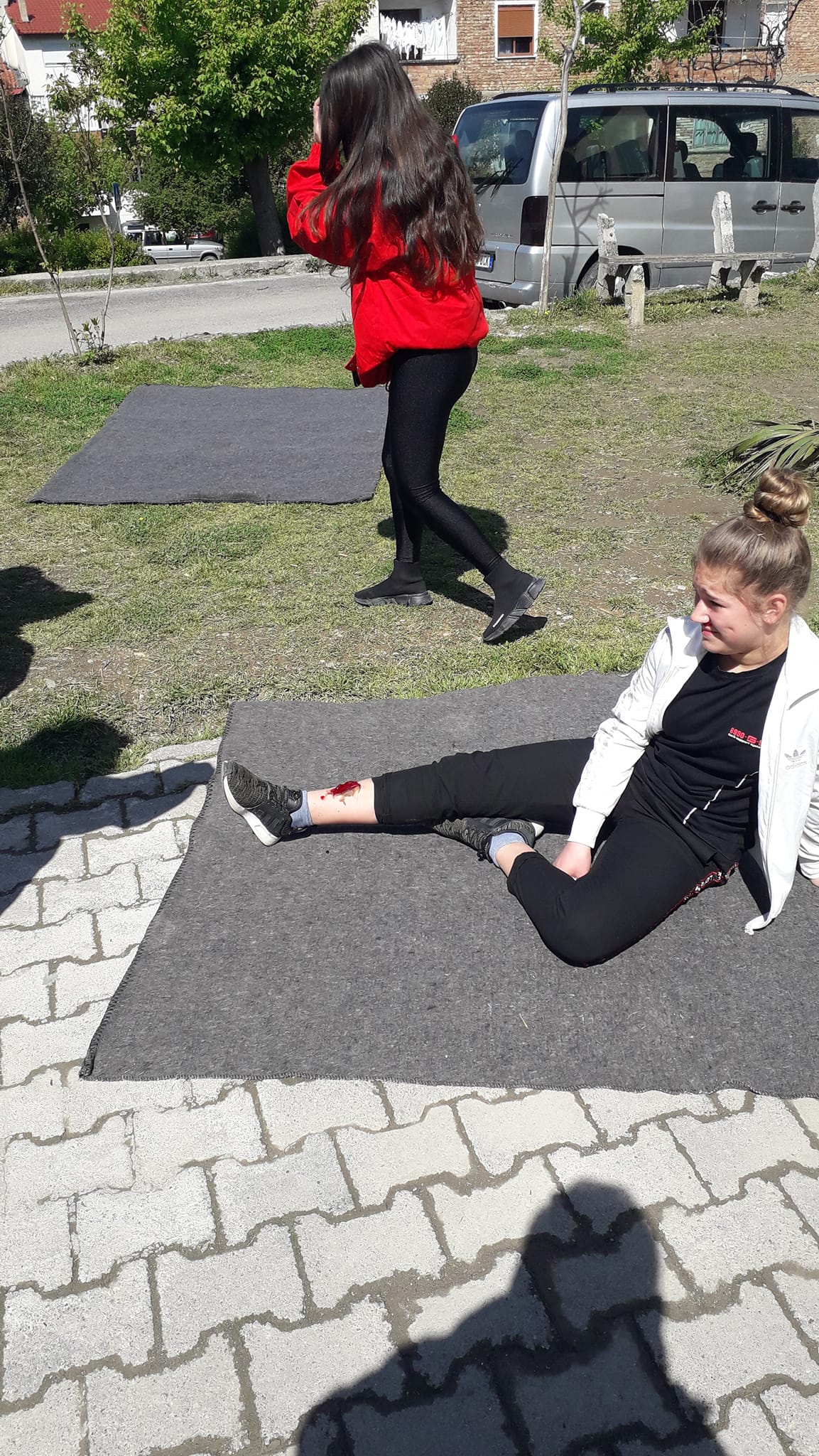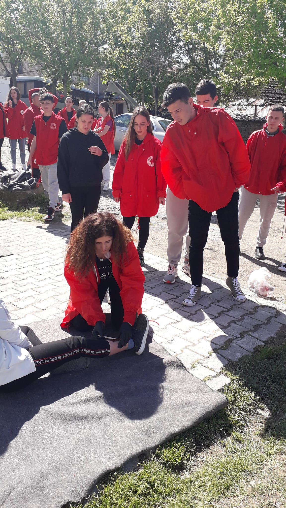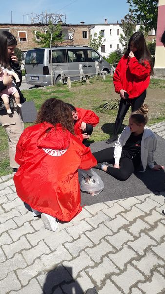 Gjatë seancave të pregatitjes së vullnetarëve për konkursin e Ndihmës Parë në rangë dege .