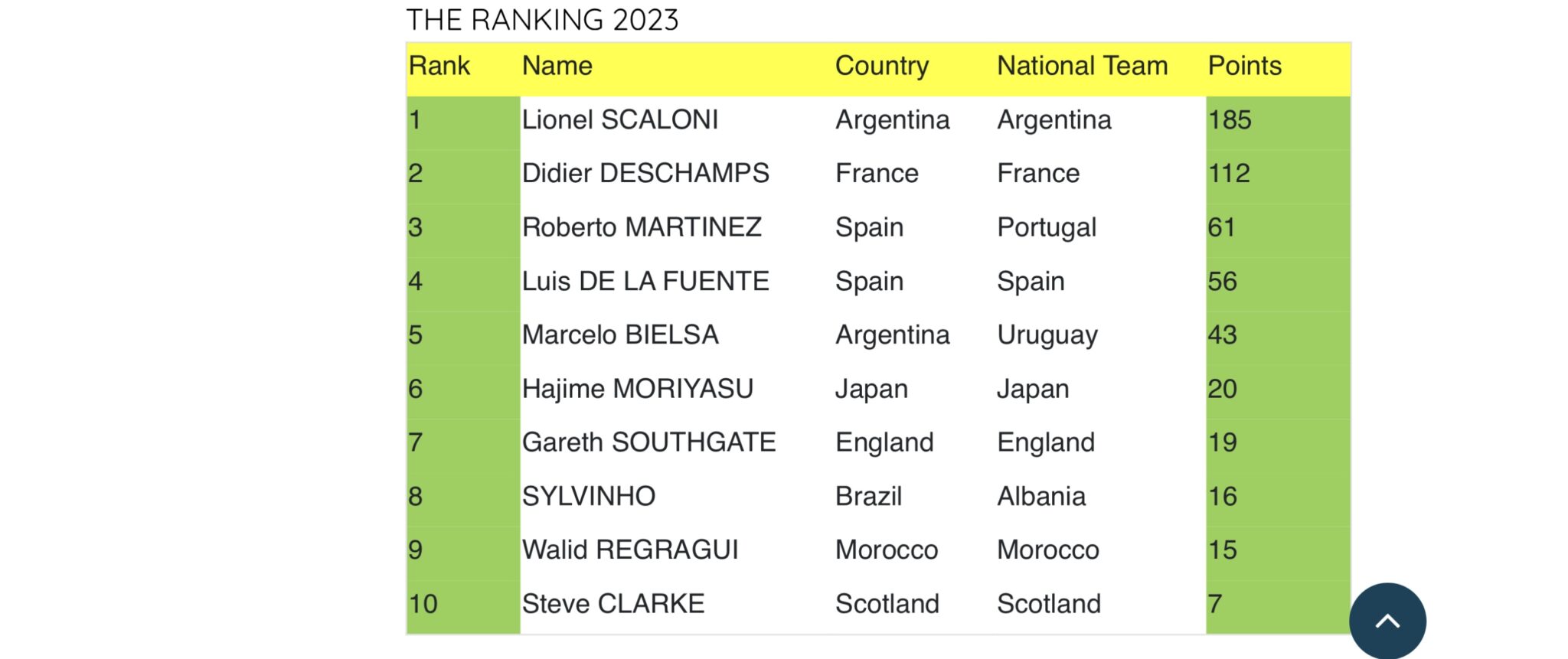 Në renditje trajneri Silvinjo ka lënë pas teknikun e Marokut, Walid Regragui i cili bëri shumë mirë me kombëtaren në Botërorin 2022 dhe trajnerin e Skocisë, Steven Clarke.