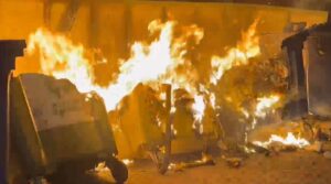 Kazanët e mbeturinave në bulevardin Aqif Pasha në afërsi të një supermarketi te kryqëzimi i 1 majit në qytetin e Elbasanit janë përfshirë nga flakët njëri pas tjetrit mbrëmjen e kësaj të marte.